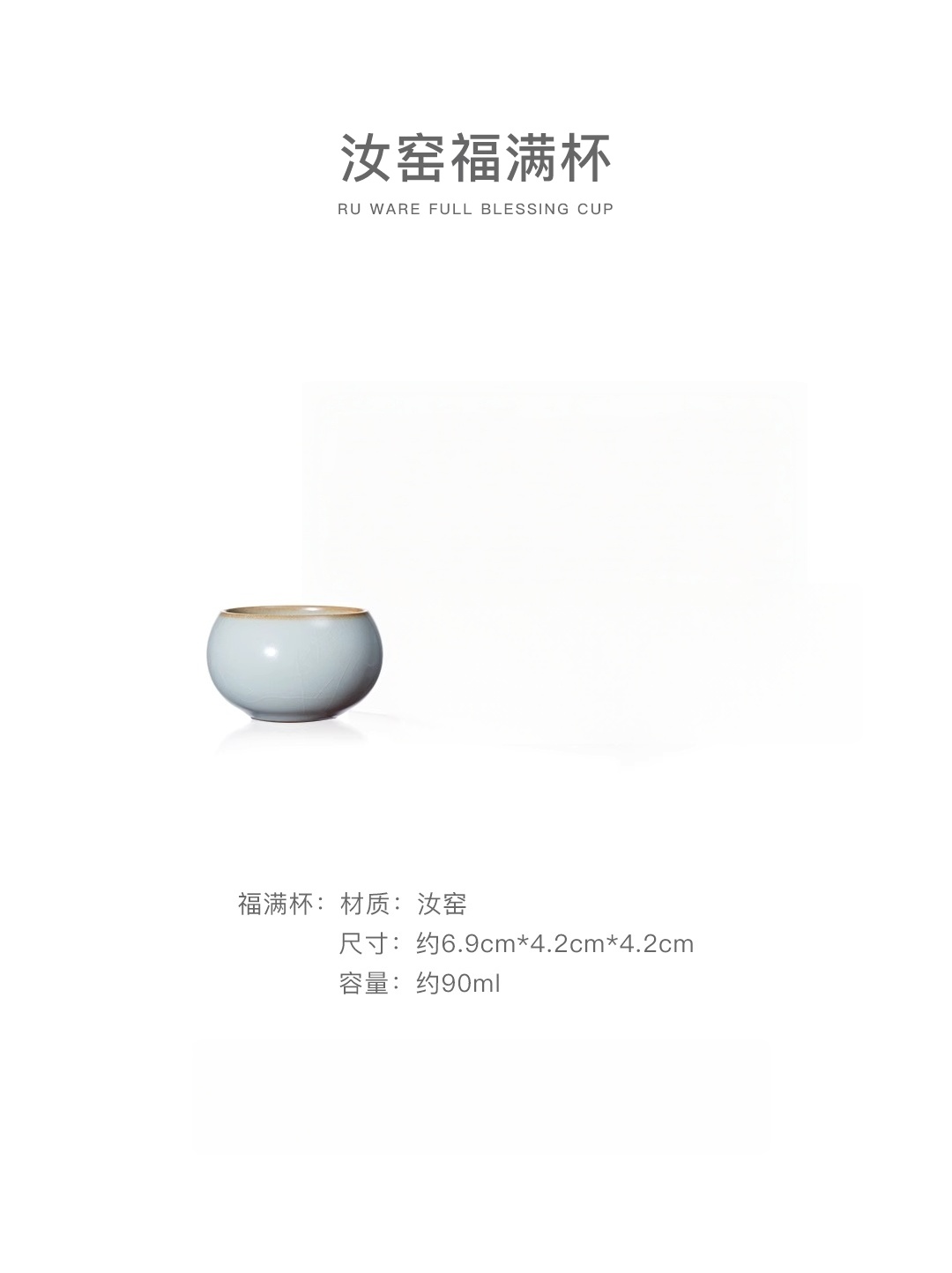 汝窑福满杯功夫茶杯主人杯单杯品茗杯陶瓷90M