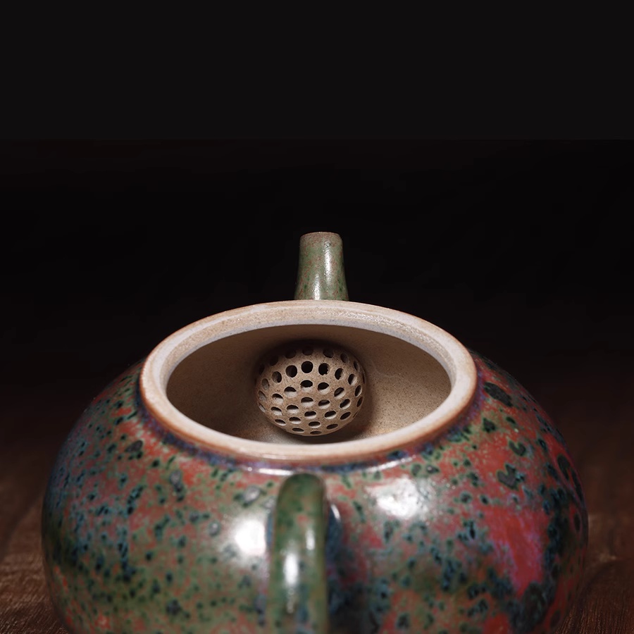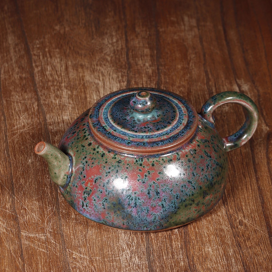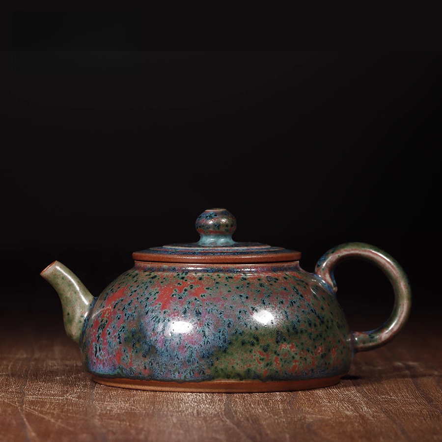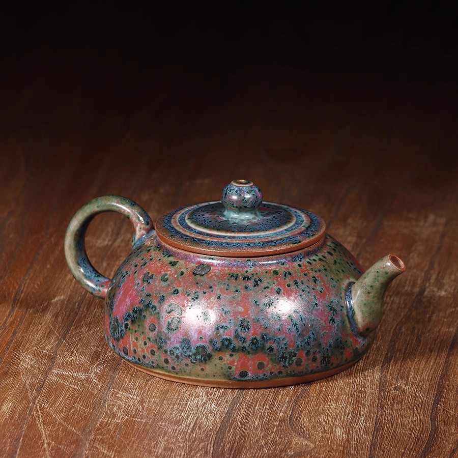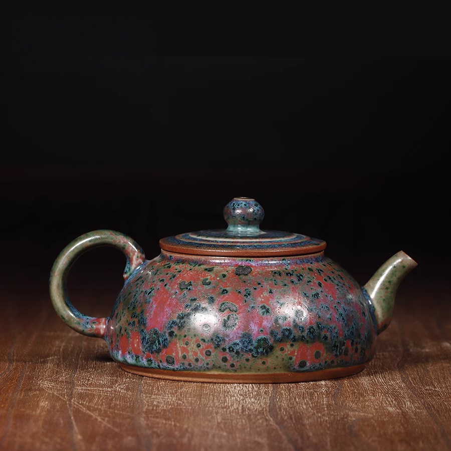钧瓷半月壶 正玉铜彩春花釉泡茶壶钧窑窑变