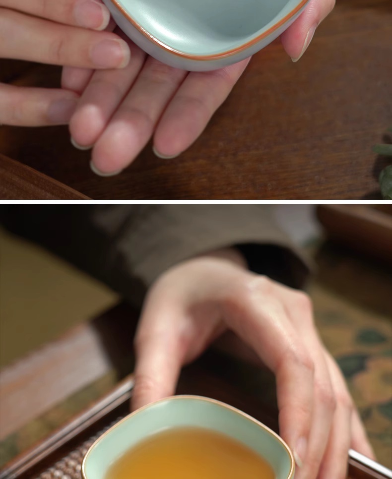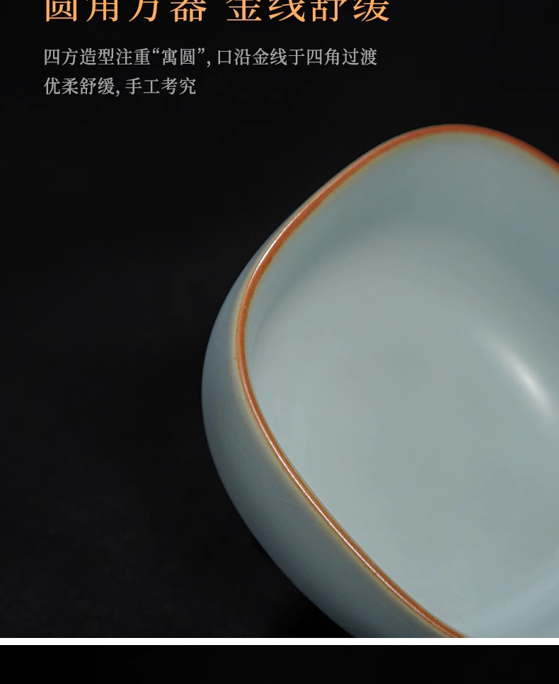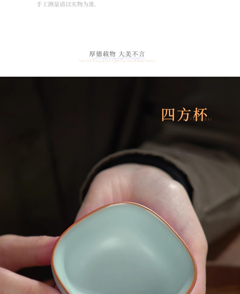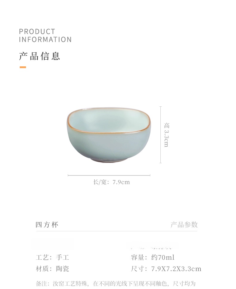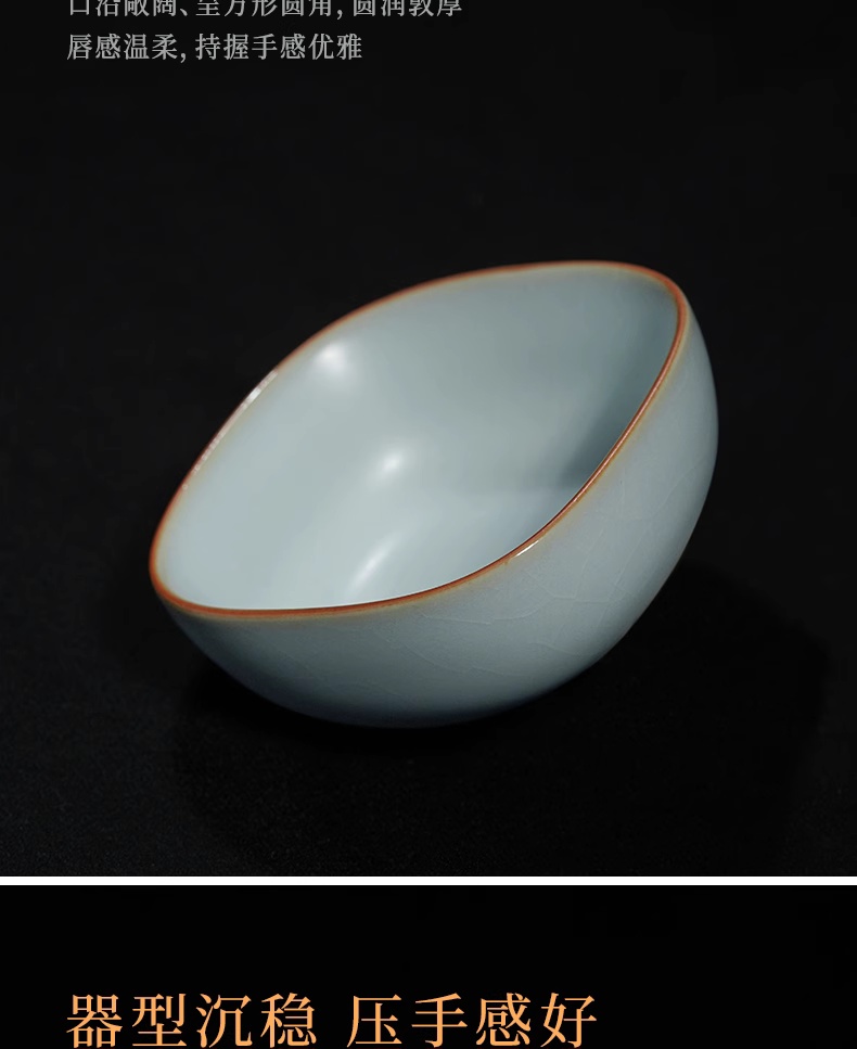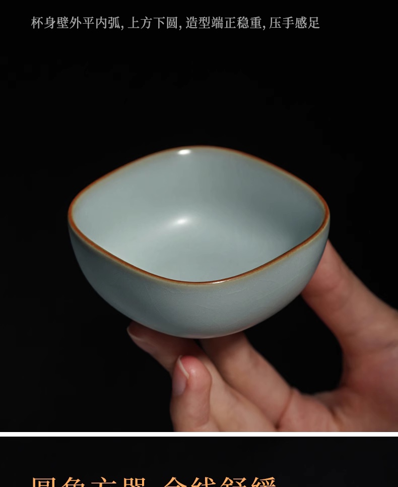 主人杯茶杯单杯四方杯复古茶盏陶瓷汝瓷品茗杯开片瓷器