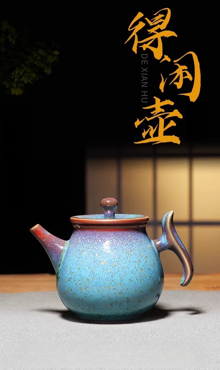 纯手工钧窑得闲壶中式复古钧瓷陶瓷窑变茶具