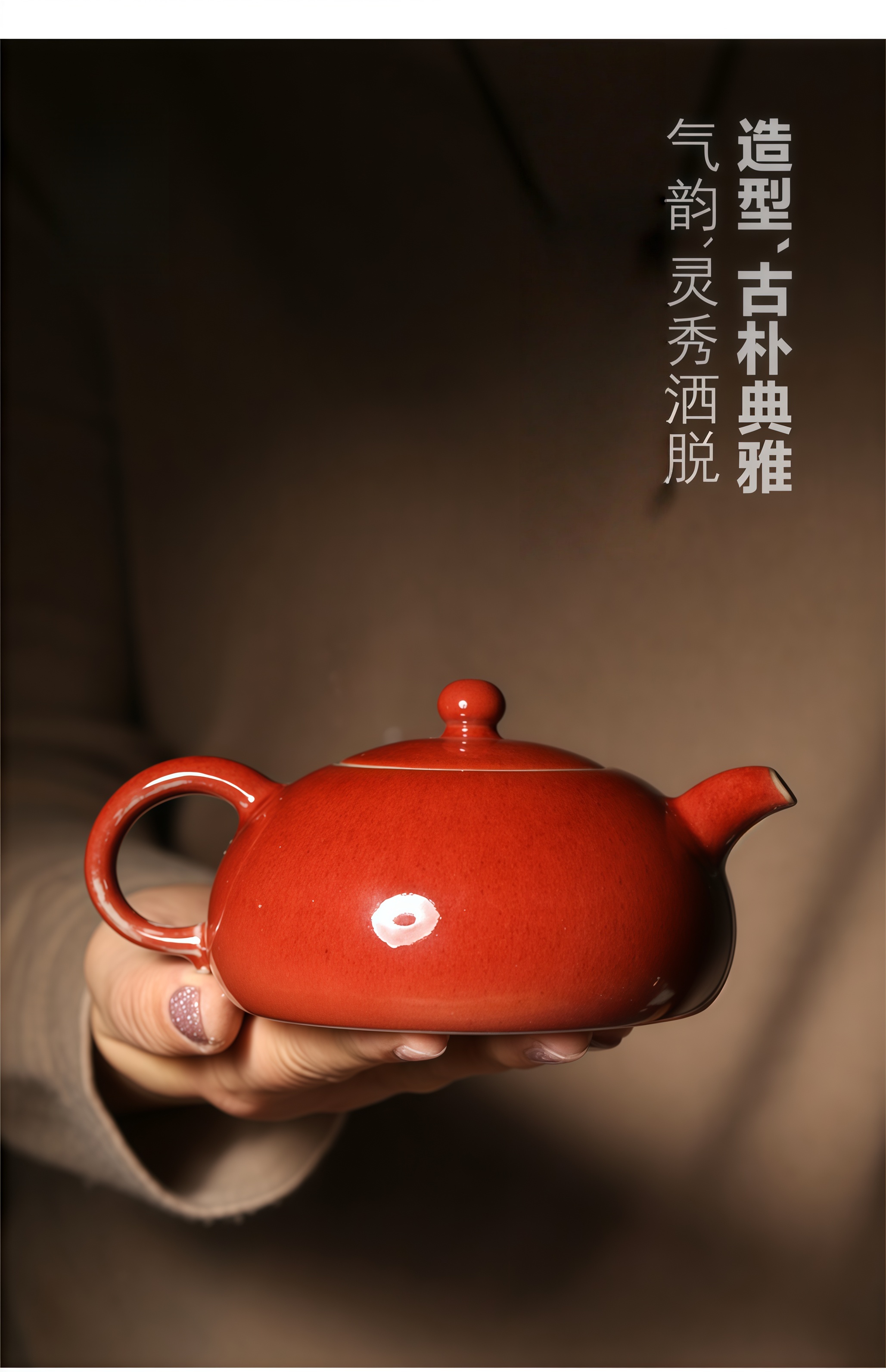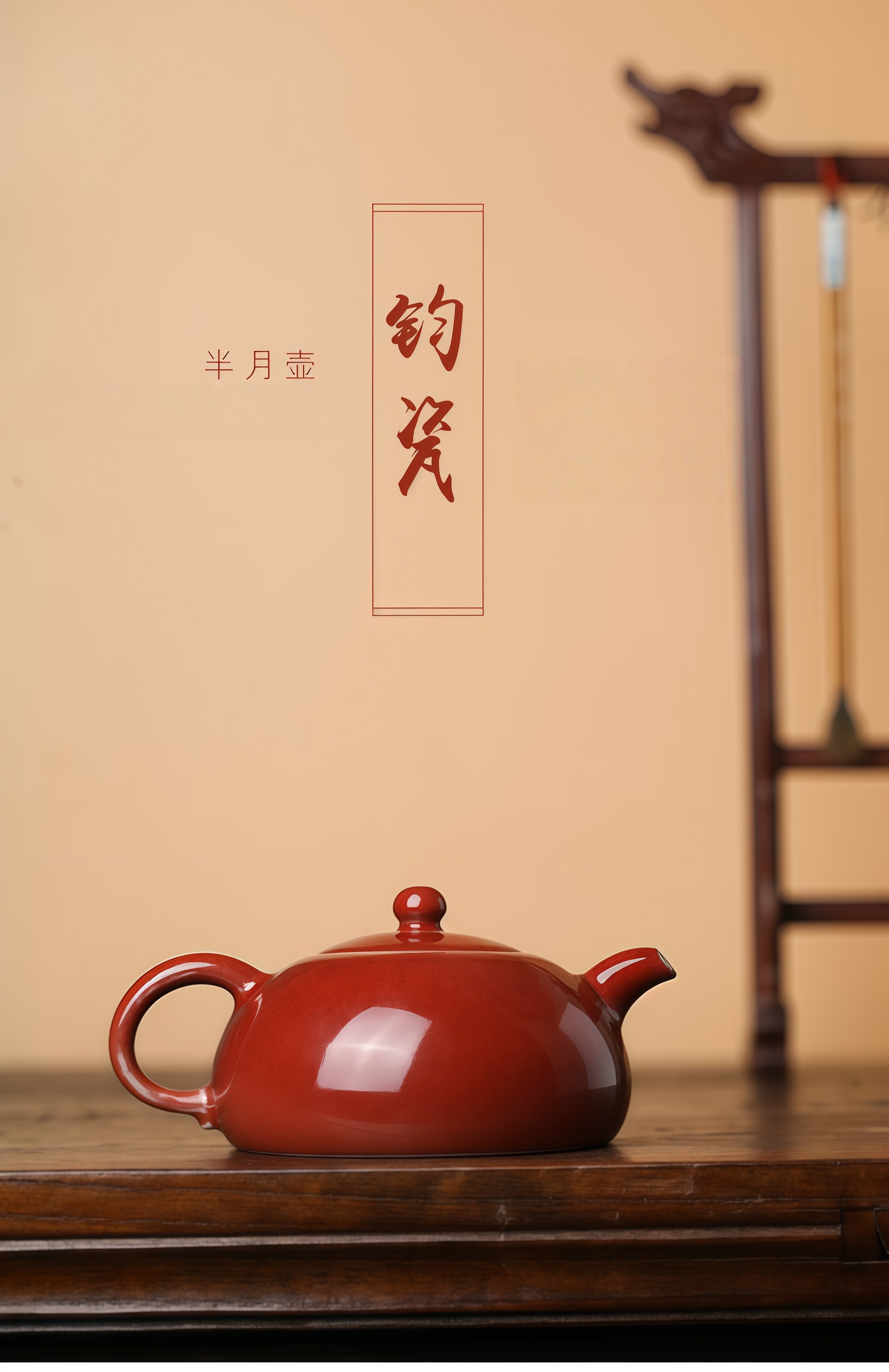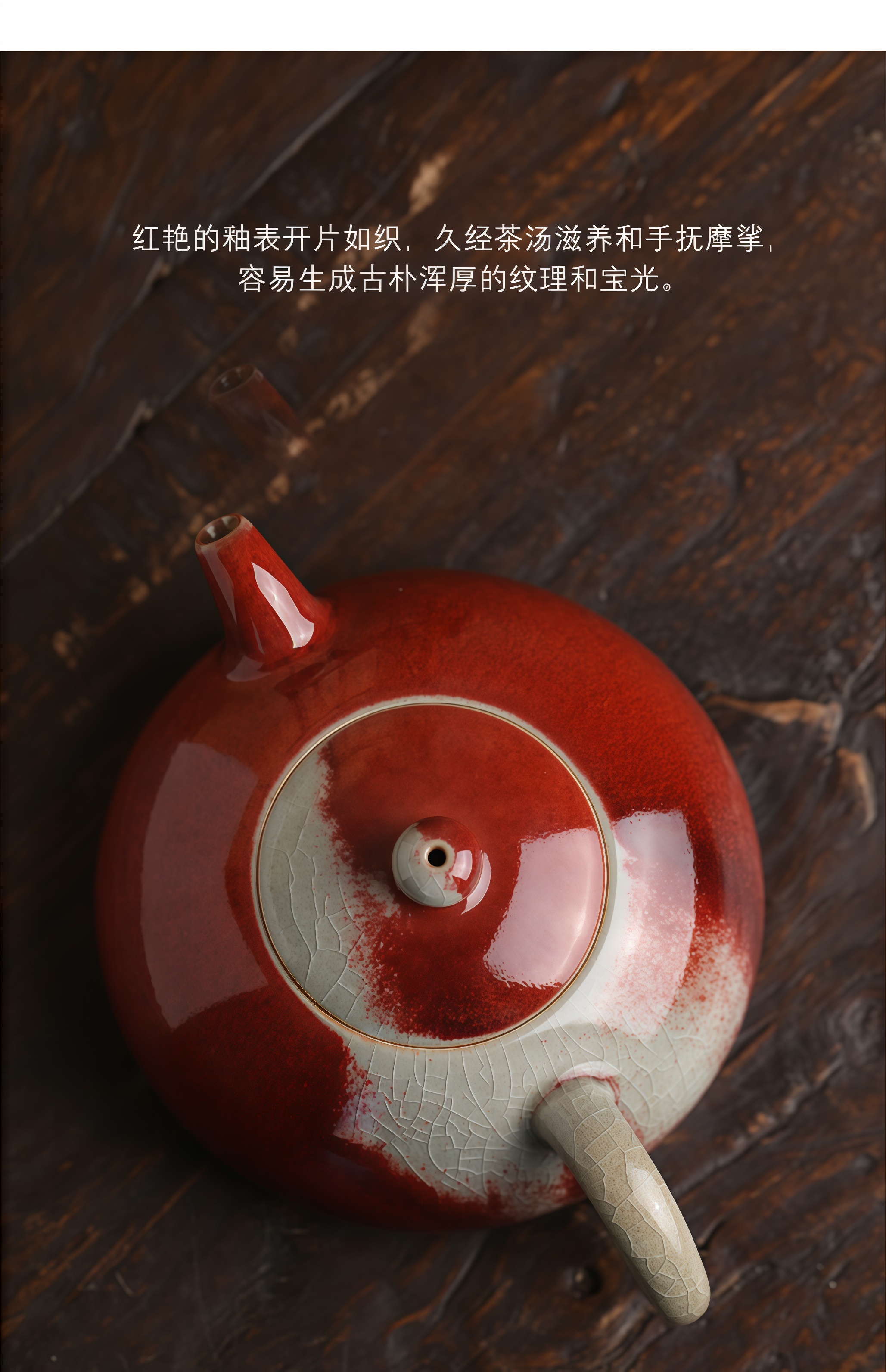 禹州神垕镇手工钧瓷半月壶开片可养宝石红色品茗收藏