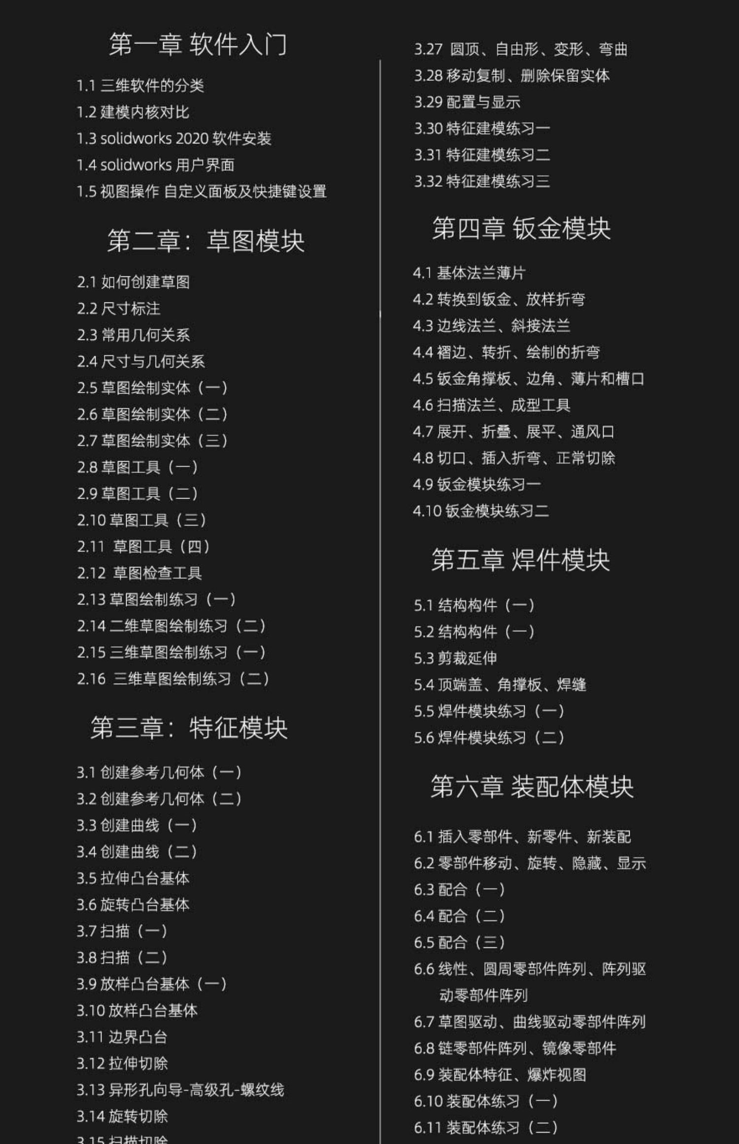 教程对SW2020新功能的讲解特别到位! 尤其是钣金折弯系数和模具工具部分,解决了很多实际工作中的难题。老师还会分享设计优化技巧,比如如何减轻重量同时保证强度,真的受益匪浅!