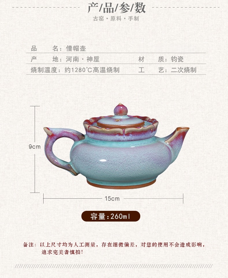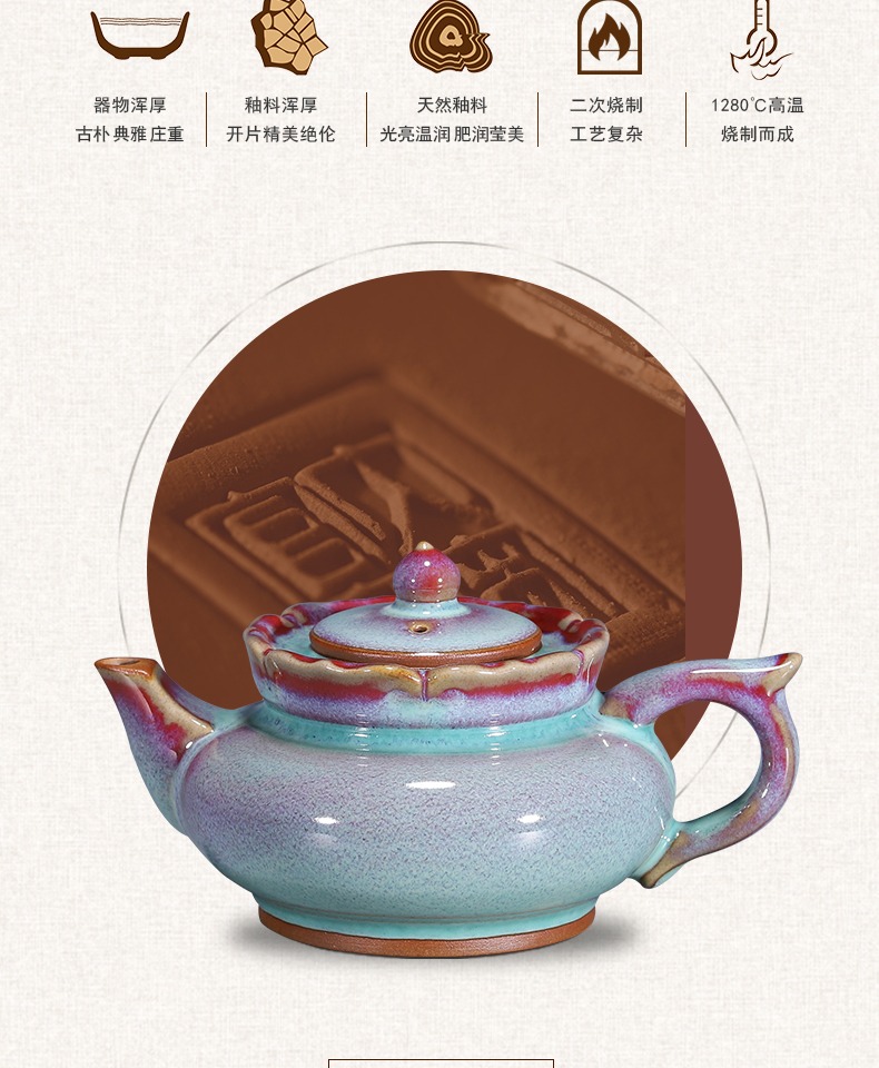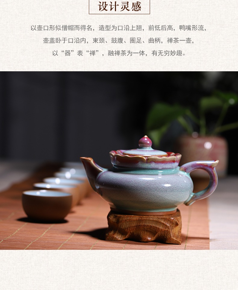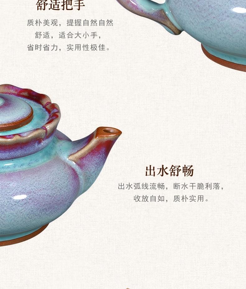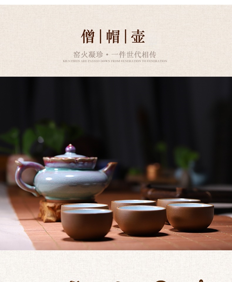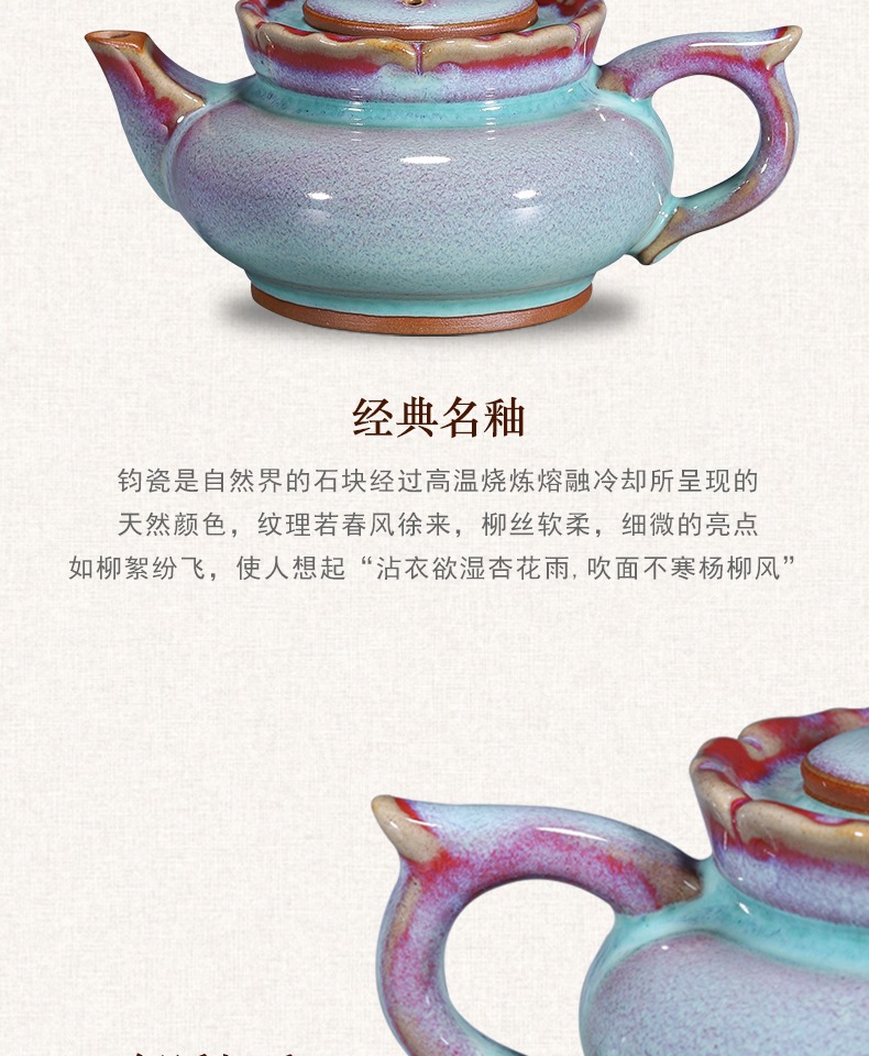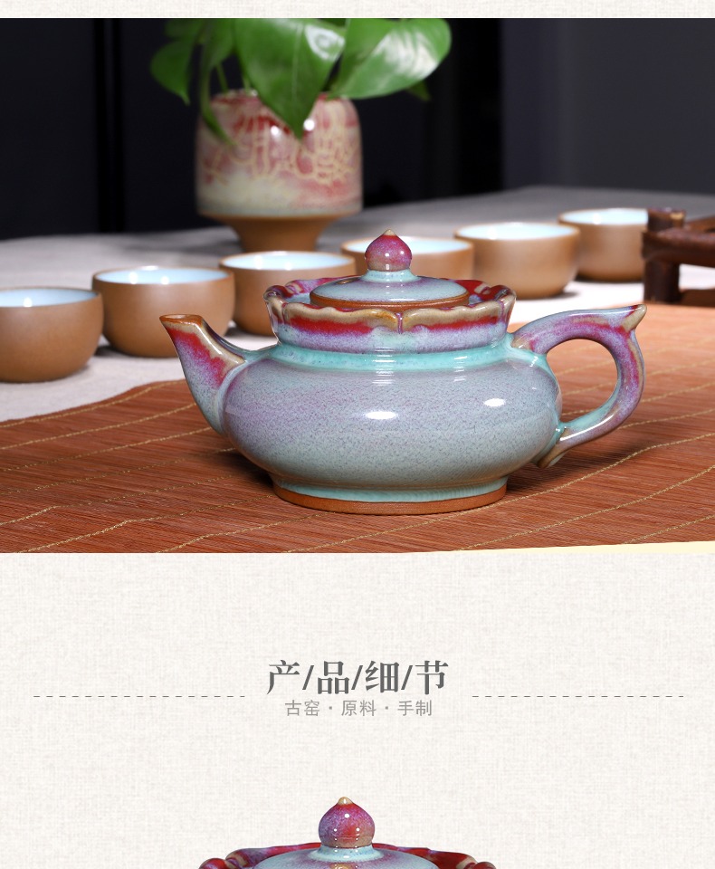 传统手工家用办公室钧窑钧瓷茶具釉窑变色套装僧帽壶