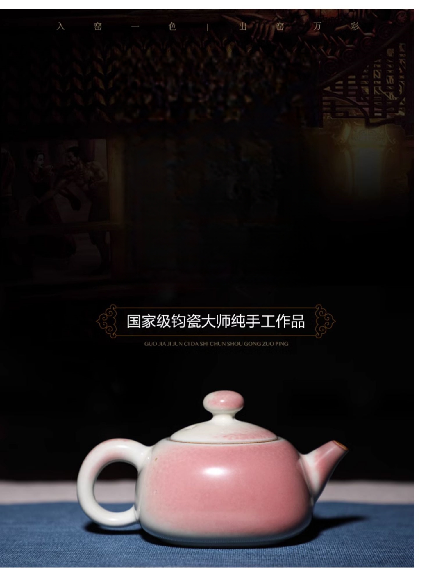 五大名窑之钧窑藏品级钧瓷天青茶壶工艺美术大师作品