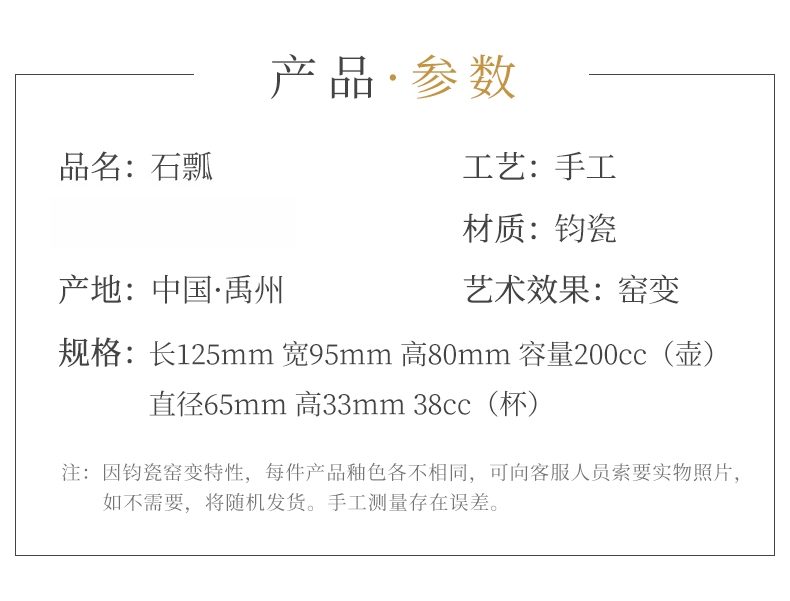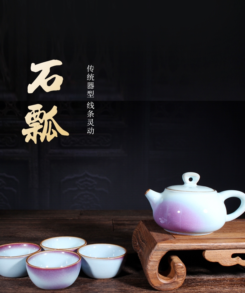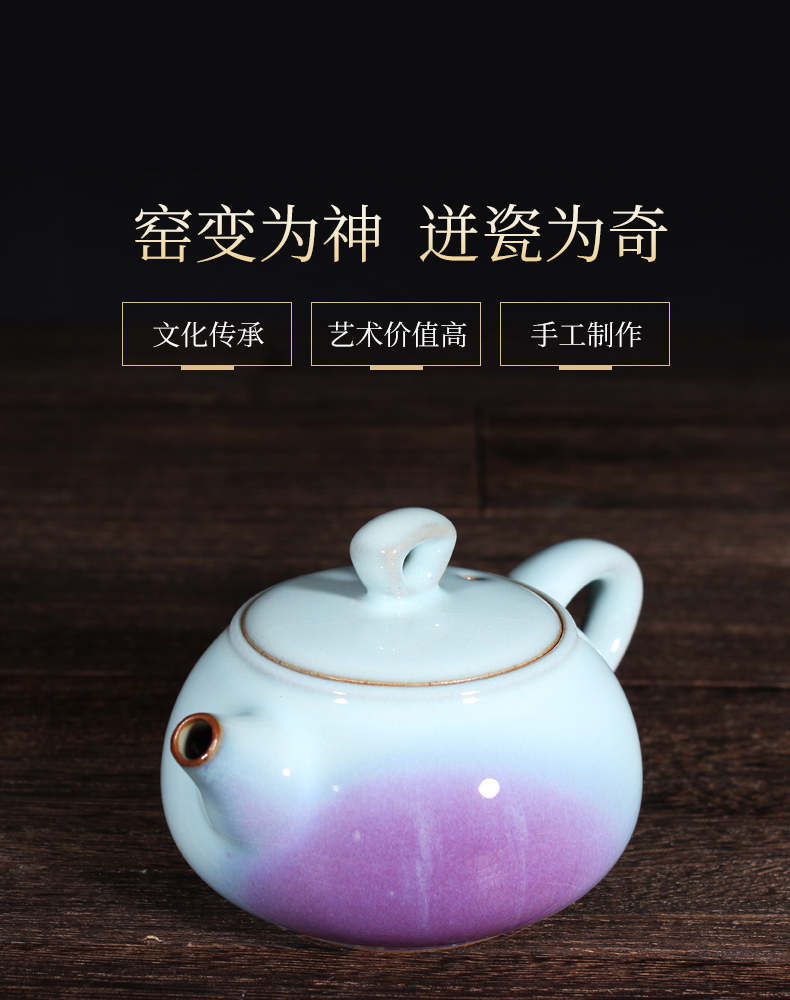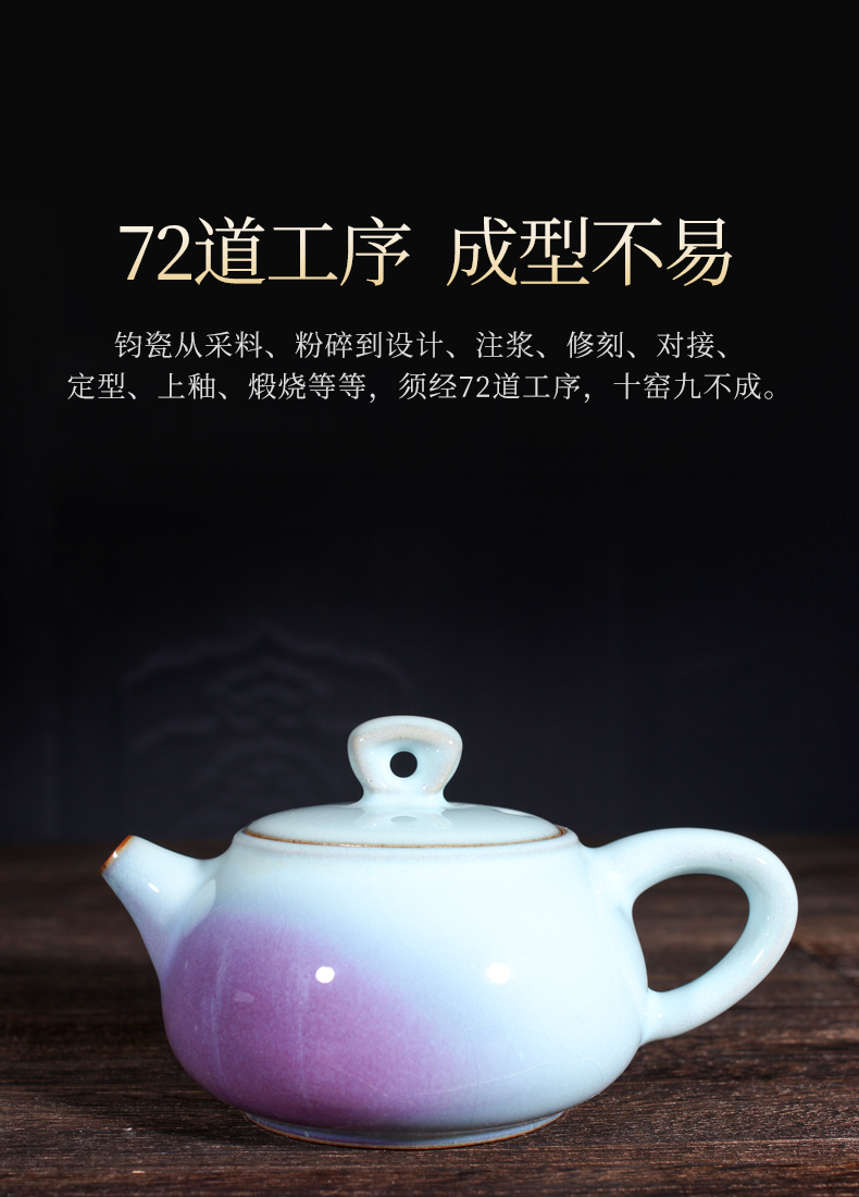 传统手工家用办公室钧窑钧瓷茶具釉窑变色套装僧帽壶