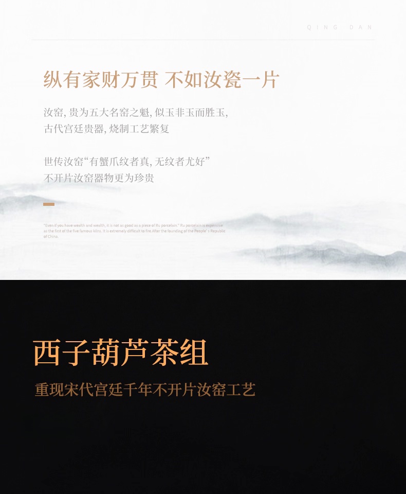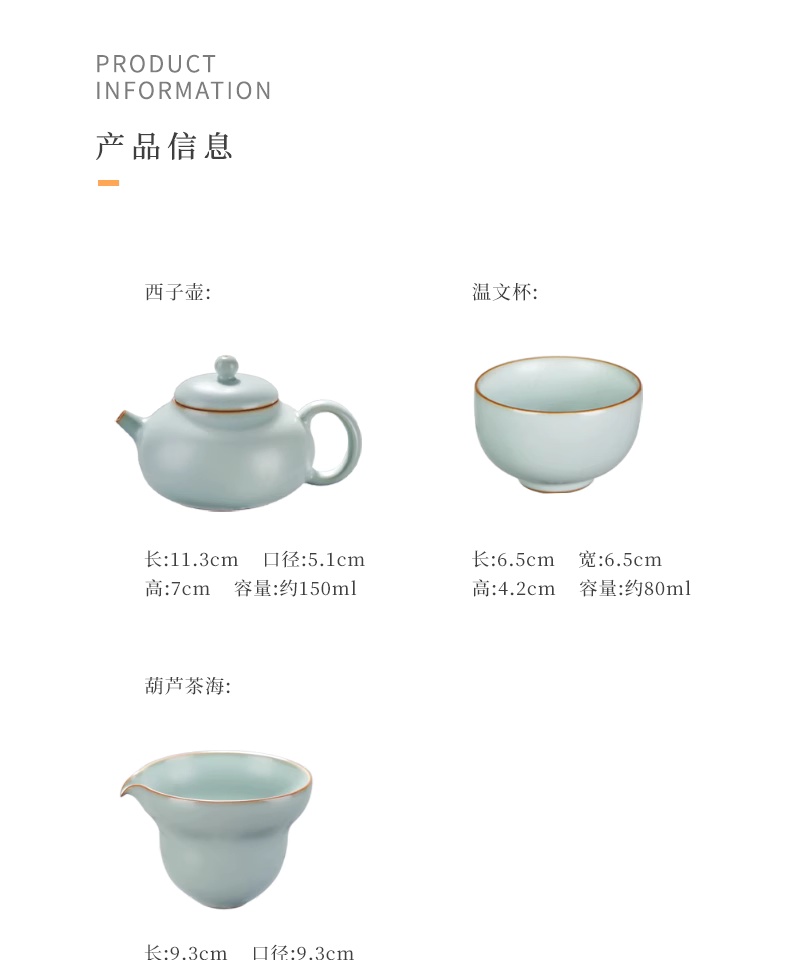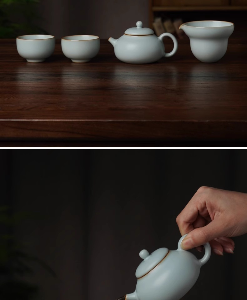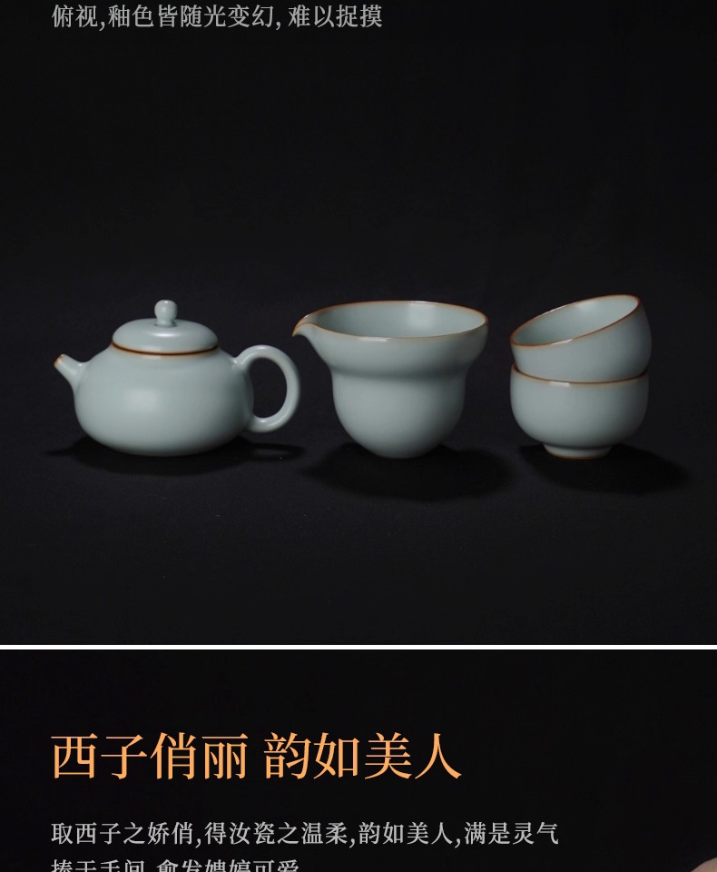 汝窑茶具套装家用客厅泡茶壶景德镇手工陶瓷复古青瓷礼品西子葫芦