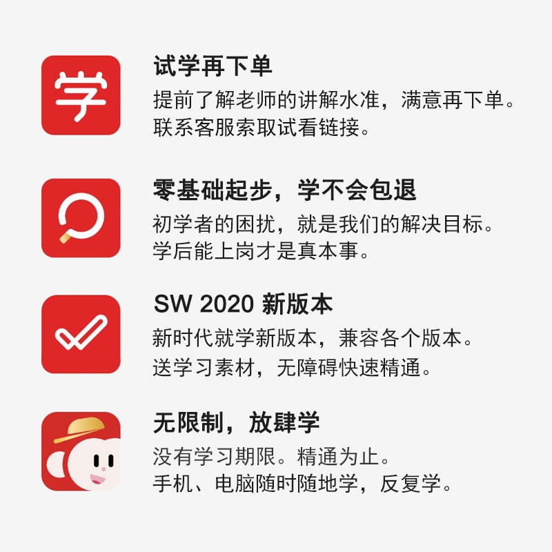 教程对SW2020新功能的讲解特别到位! 尤其是钣金折弯系数和模具工具部分,解决了很多实际工作中的难题。老师还会分享设计优化技巧,比如如何减轻重量同时保证强度,真的受益匪浅!