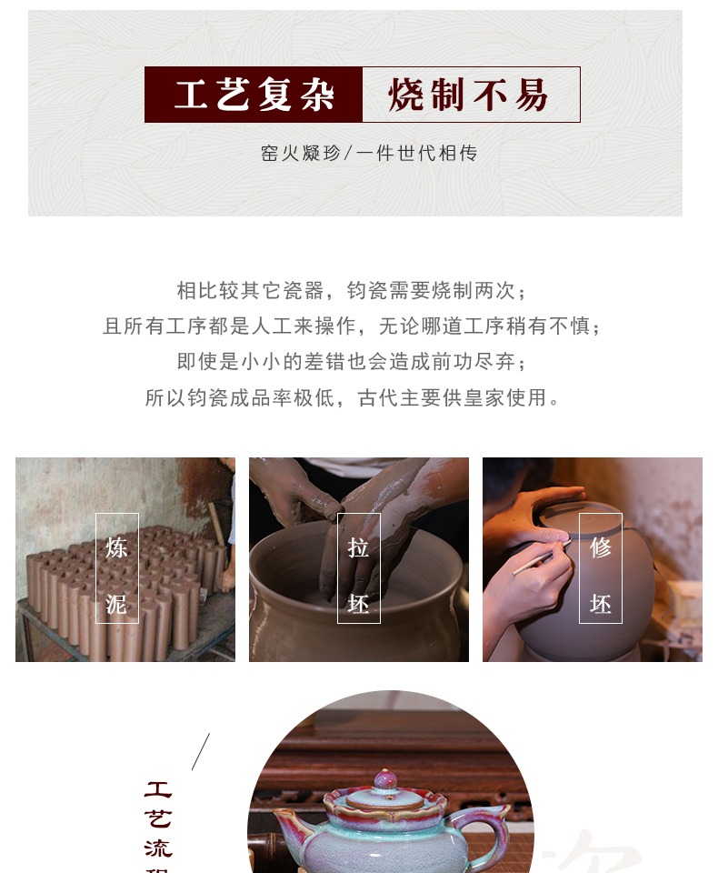 传统手工家用办公室钧窑钧瓷茶具釉窑变色套装僧帽壶